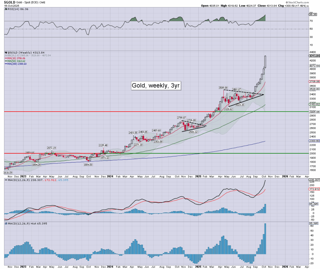 Today gold printed a new hist’ high of $4319.62, as this week has seen an acceleration in the upward trend, partly due to a geo-political fear bid.