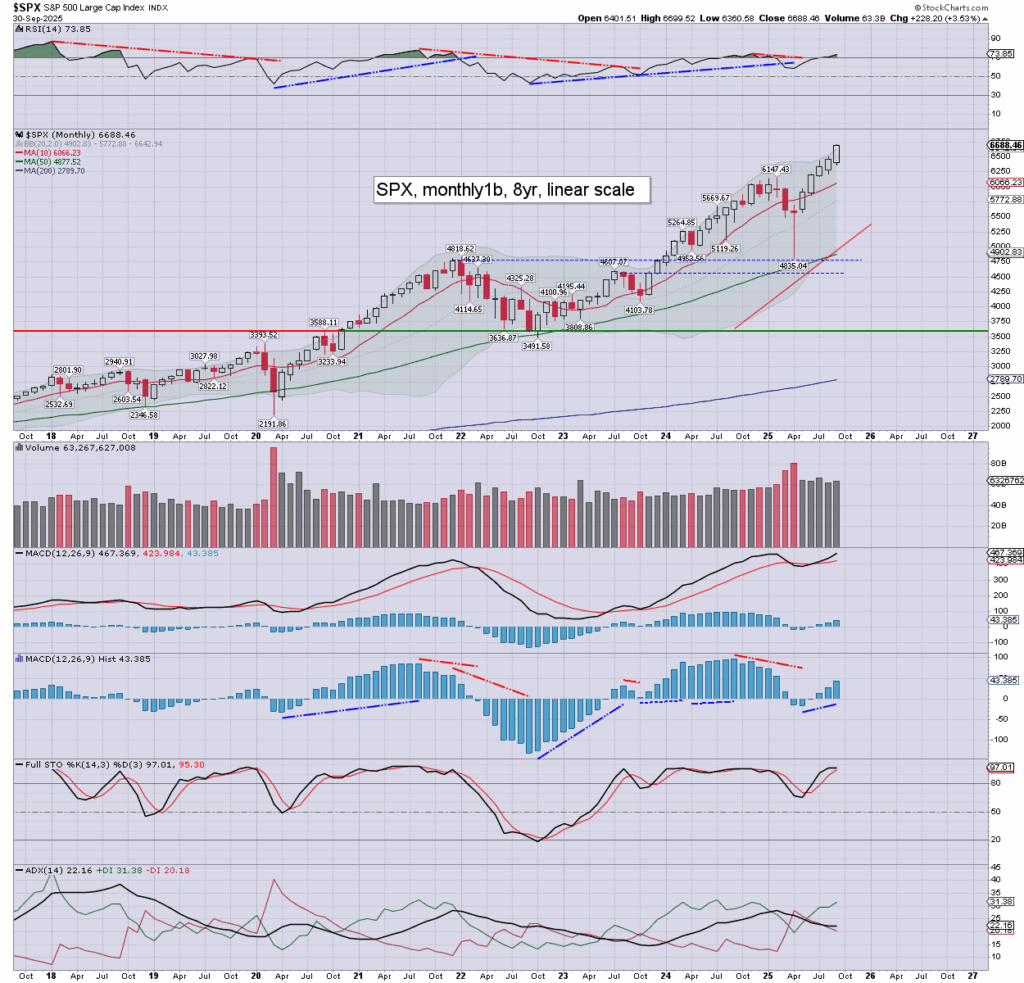 Monthly RSI 73s is overbought, but we’ve ZERO sign of a short, never mind m/t ceiling/turn. We could cool to the 6100s in Oct/Nov’, and that still wouldn’t dent the m/t trend.